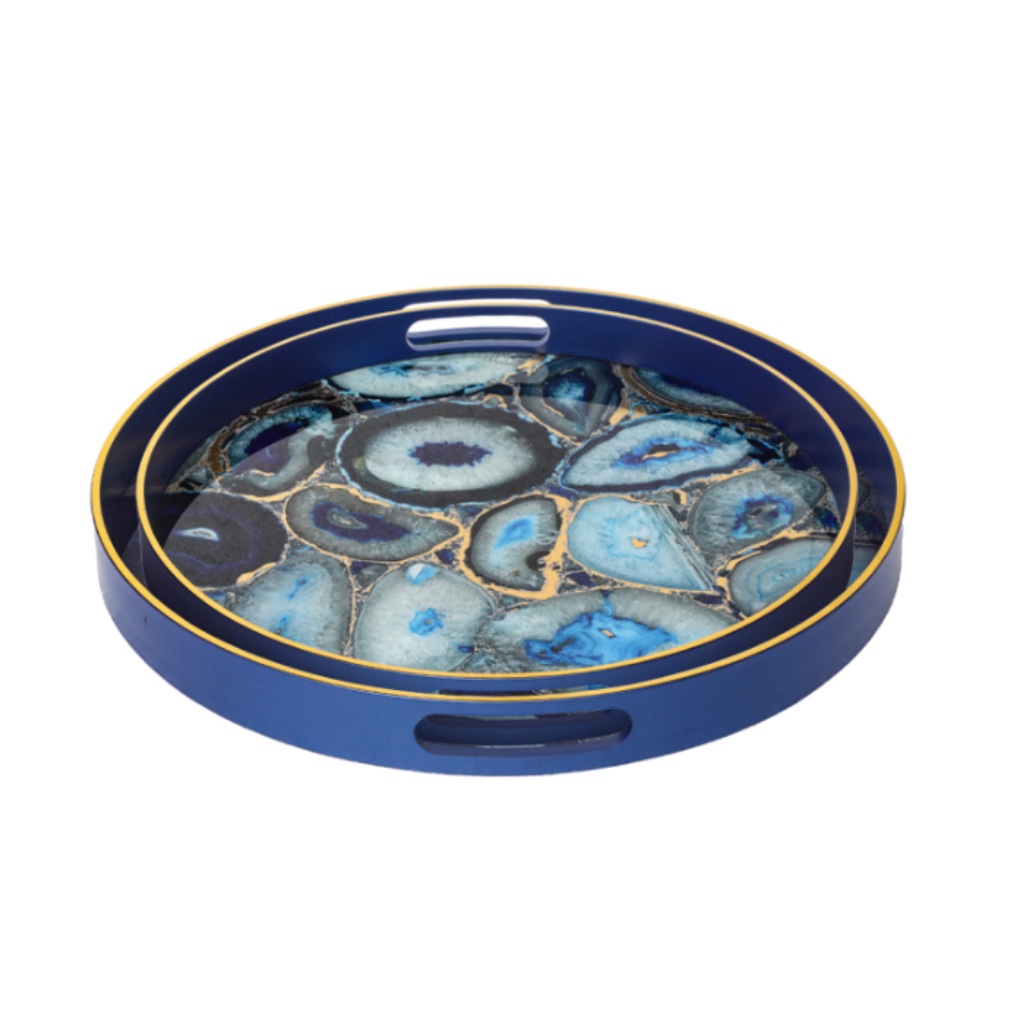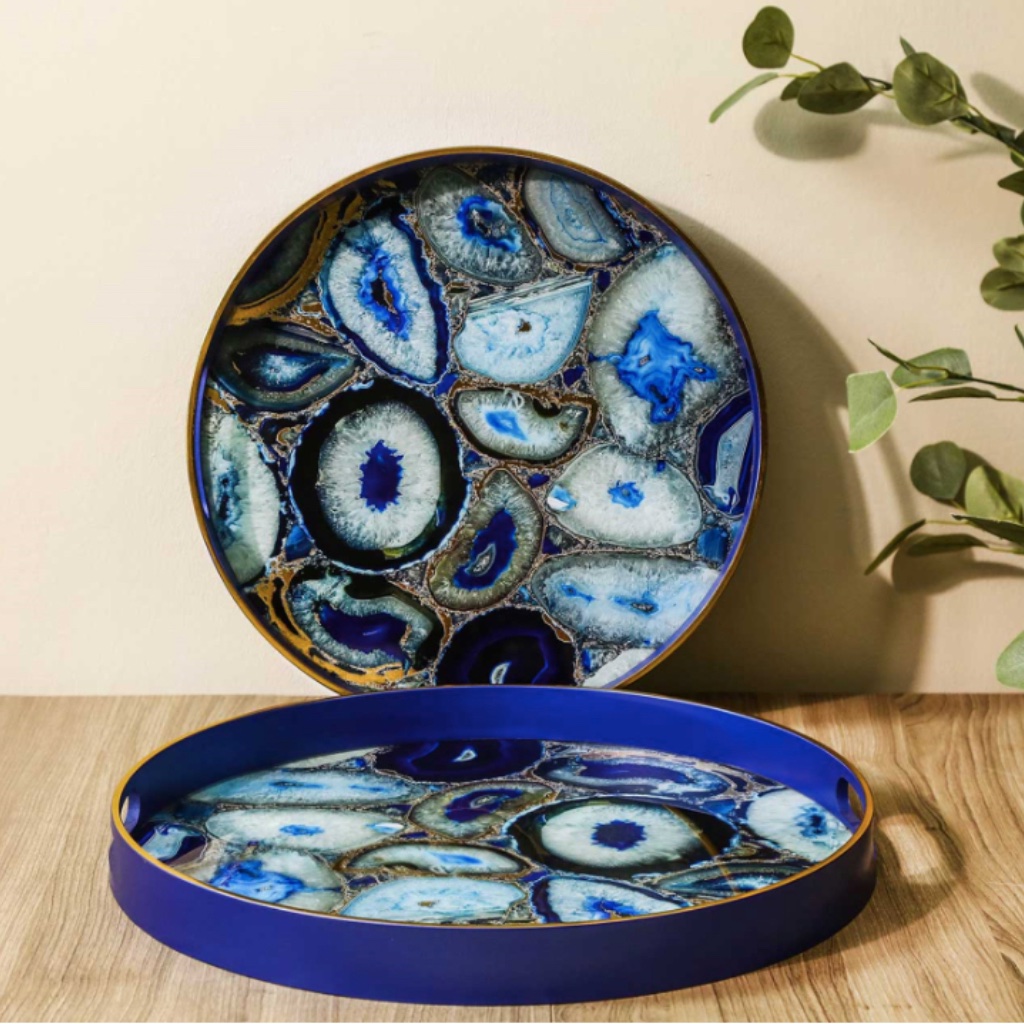 Agate inspired blue trays