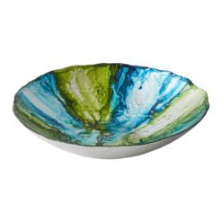 Handcrafted stunning glass bowl in a radiance array of turquoise and green.