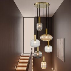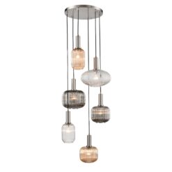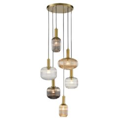 Choose gold or silver ceiling fitting and then your choice of six of the 15 glass ribbed shades to go with it (you can have all the same shape and colour if you wish)