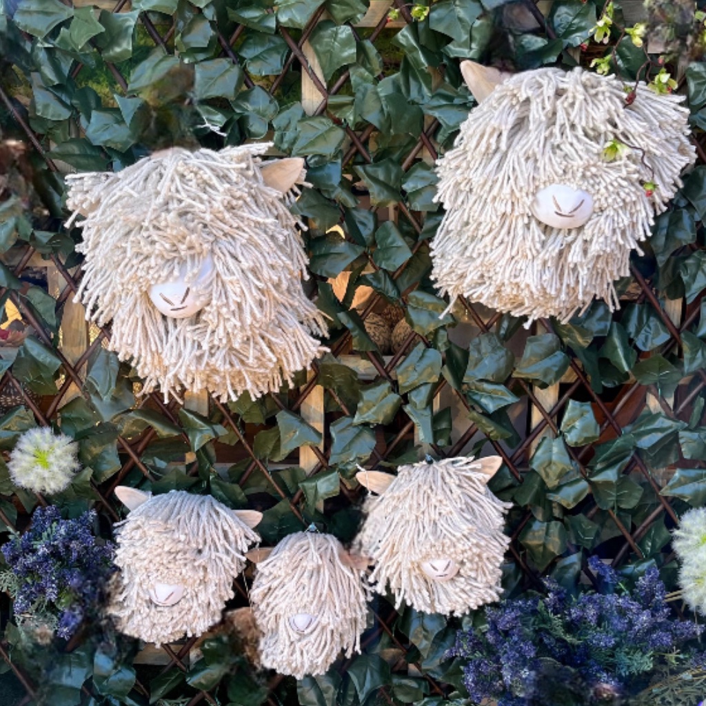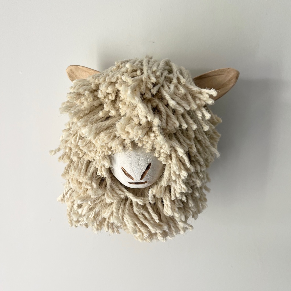 Quirky sheep wall busts, handcrafted. Made of jute.