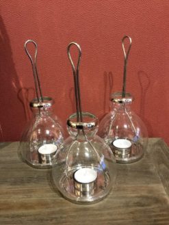 Set of 4 contemporary and useful tea light holders perfect for inside the home or out in the garden used all year round. This is our best selling tea light. They look fabulous and enchanting dotted about or hanging in the trees. Great for outdoor dining and parties. The glass protecting the flame lifts up to insert the tea light.