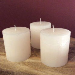 These are lovely ivory candles, non-drip and slow burners. We use these with all our lanterns and large candle holders. They will not leave black marks on your ceilings or walls.