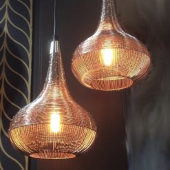 Steel coil wire pendant with a gold lacquer interior, creating a shimmering atmospheric warm glow.