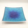 Hand made coaster enamel set of 6 in translucent aqua with royal blue organic motif. Hand wash only.