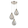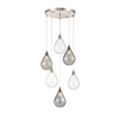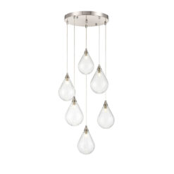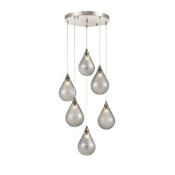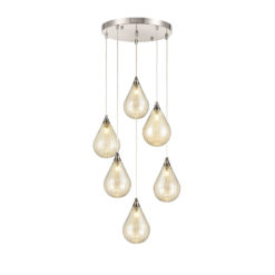 Ceiling rose 6-drop dimensions: Diameter 35cm in a satin nickel finish with clear cable adjustable lengths.