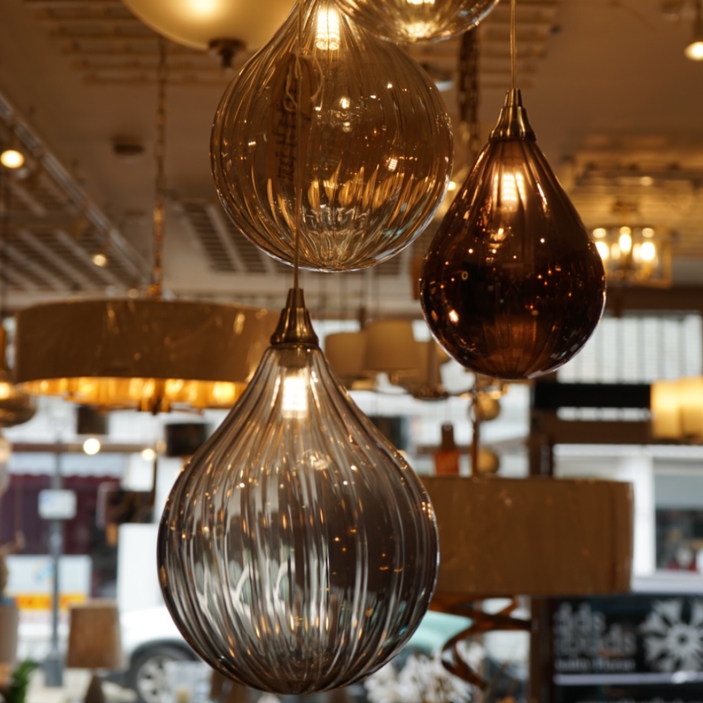 Stunning hand blown glass pendants, glass droplets available in 2 sizes and 4 colours (clear, honey, smoke and mocha), giving endless options.