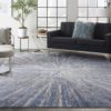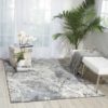 Contemporary comfort with a short pile in a design of artistic, abstract brush strokes.