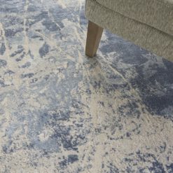 Modern abstract pattern in denim blues and cream- looks fabulous on any wooden floor.