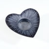 Translucent jewel like heart shaped enamel tea light holder with silver grey and pearl enamelling detailing set on smoothed polished recycled aluminium base. Each one is unique due to the handcrafted nature of this product.