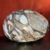 White handcrafted glass oval lamp with a vortex of calming blue turquoise ripples.